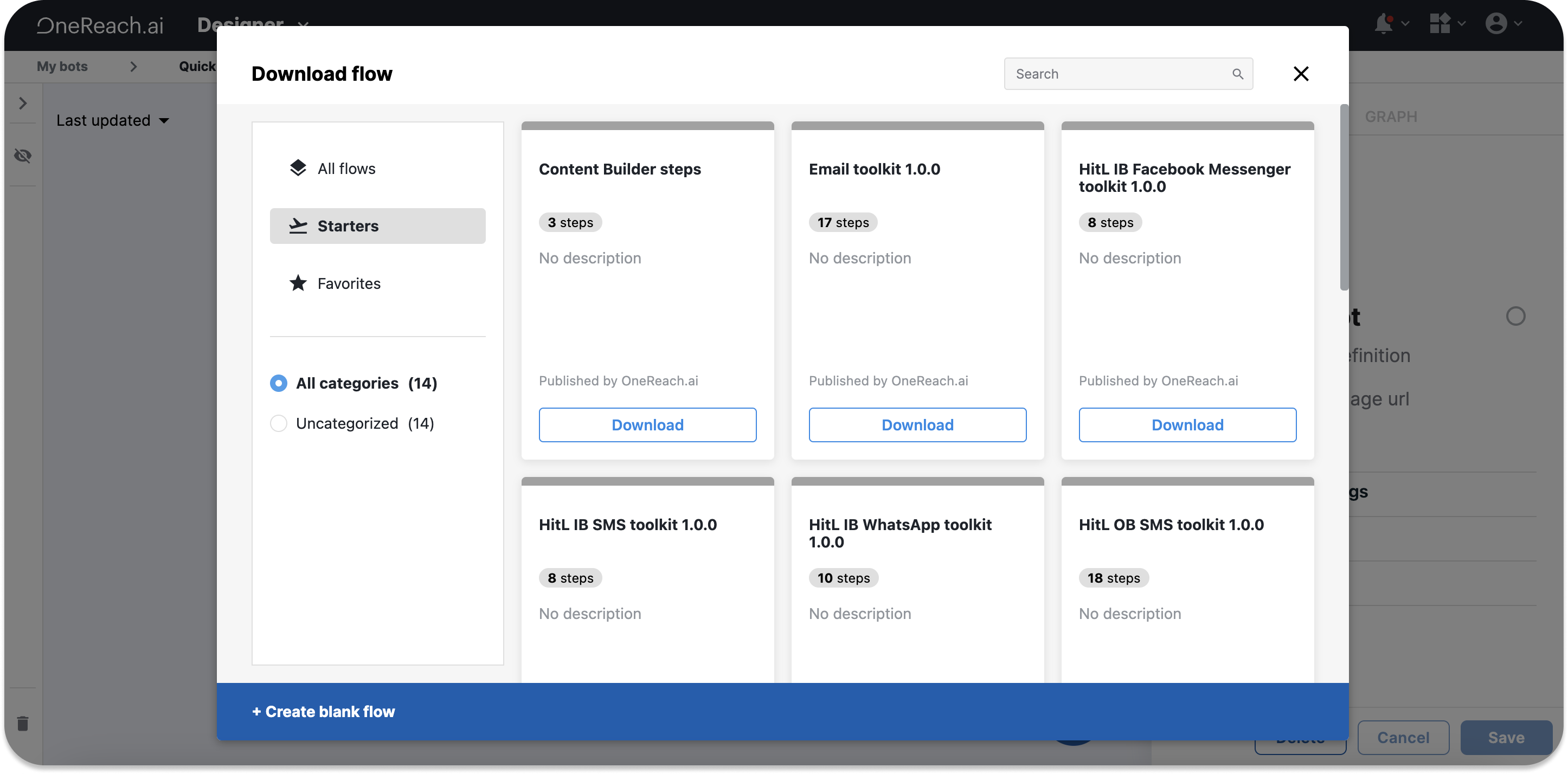 - Search and download the needed Starter Flow.