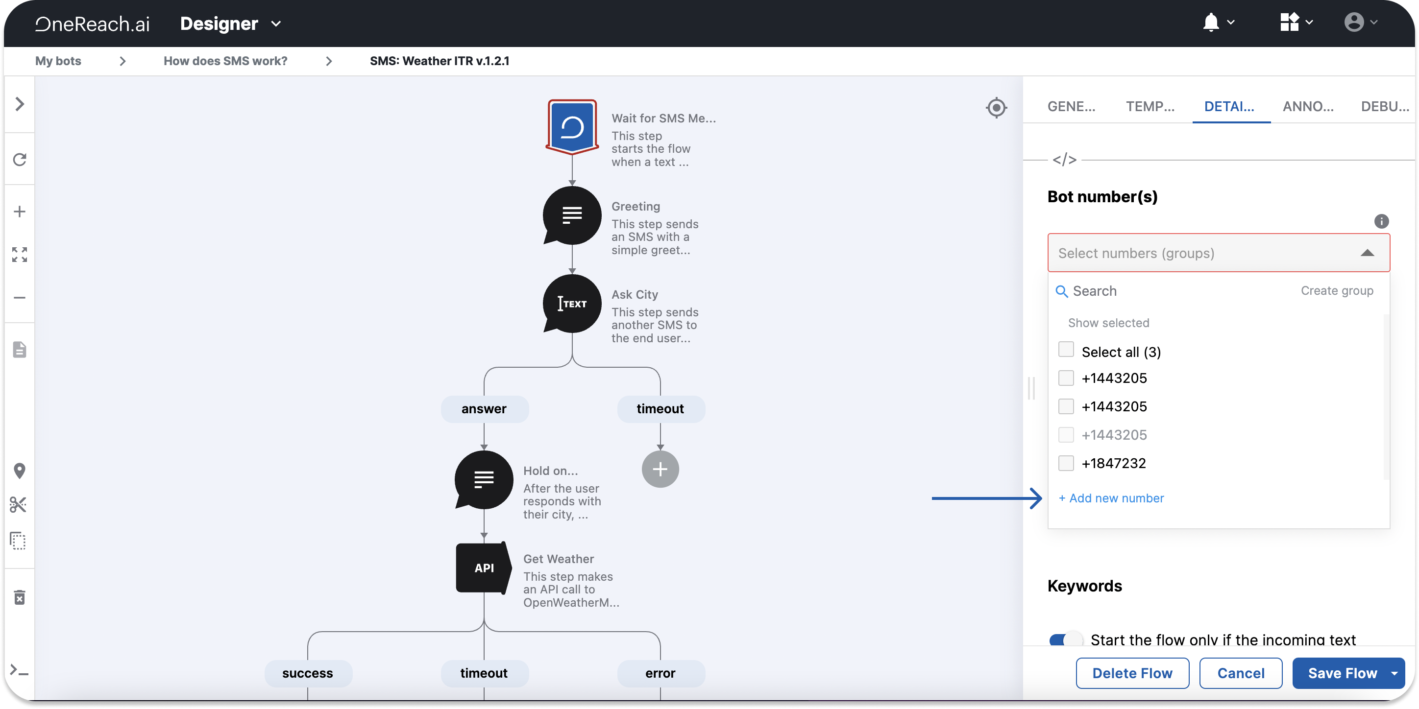 - Select the phone number from the list of available numbers.