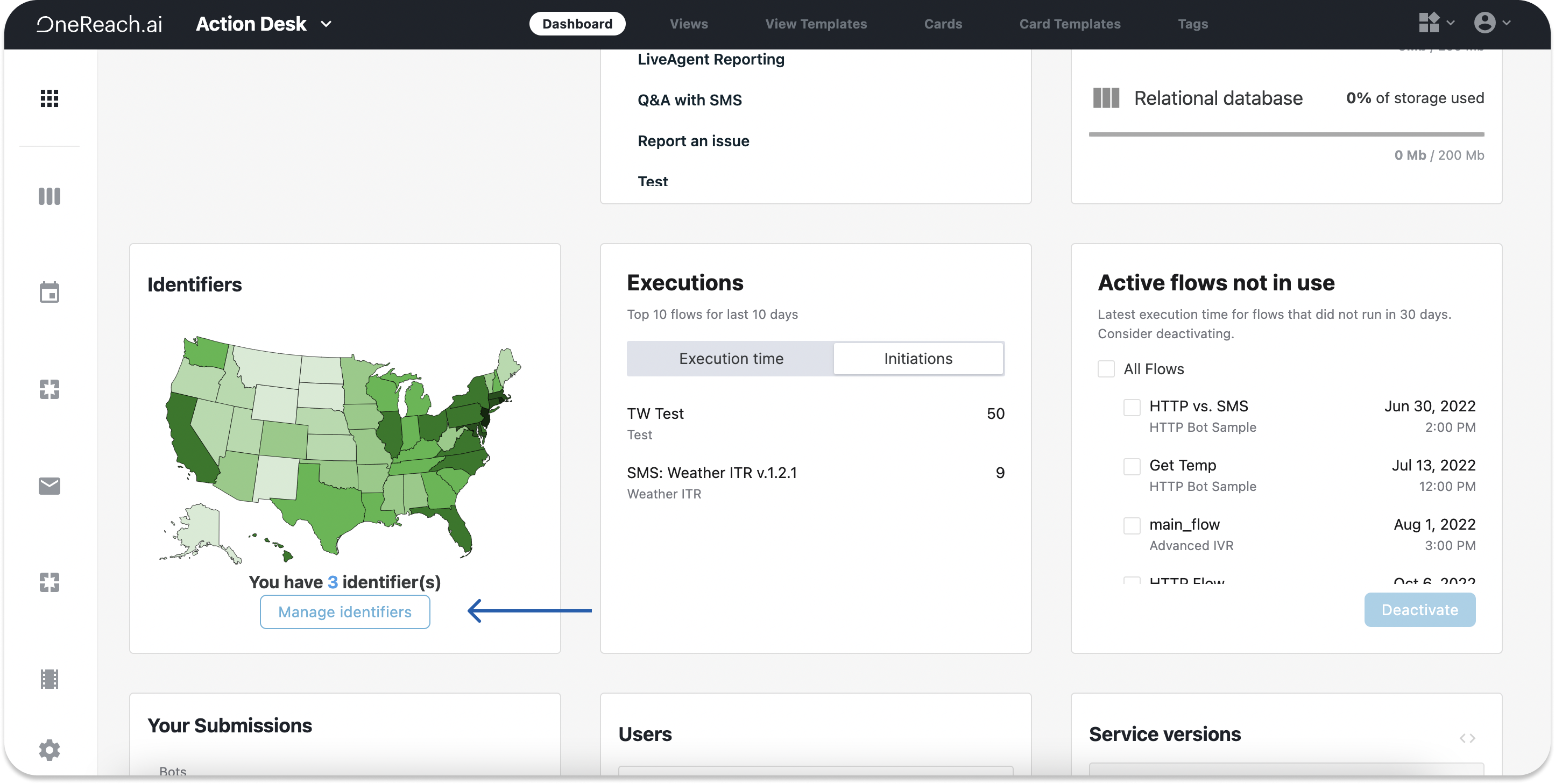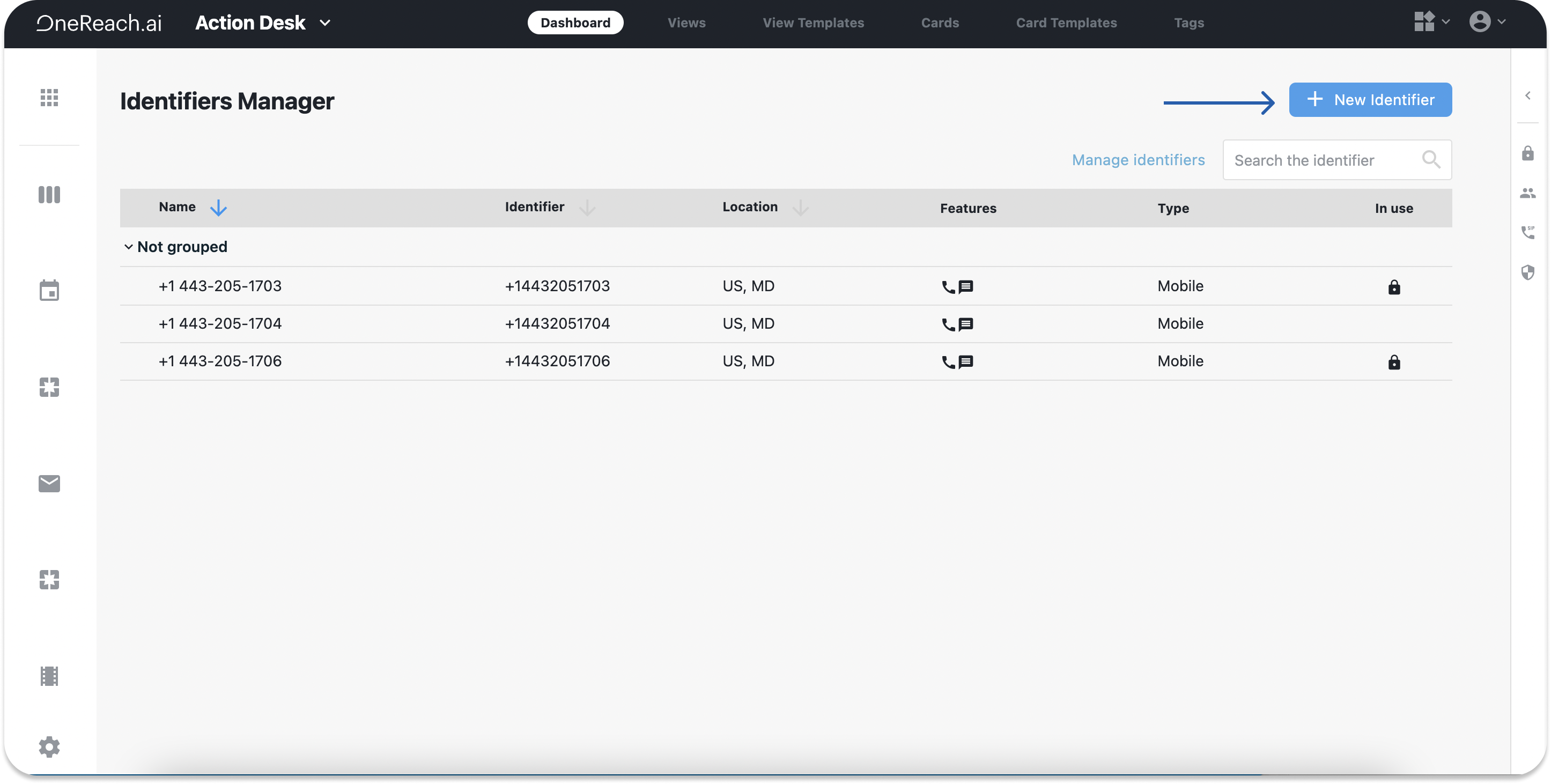 - Navigate to the Dashboard in Action Desk and click Manage identifiers.