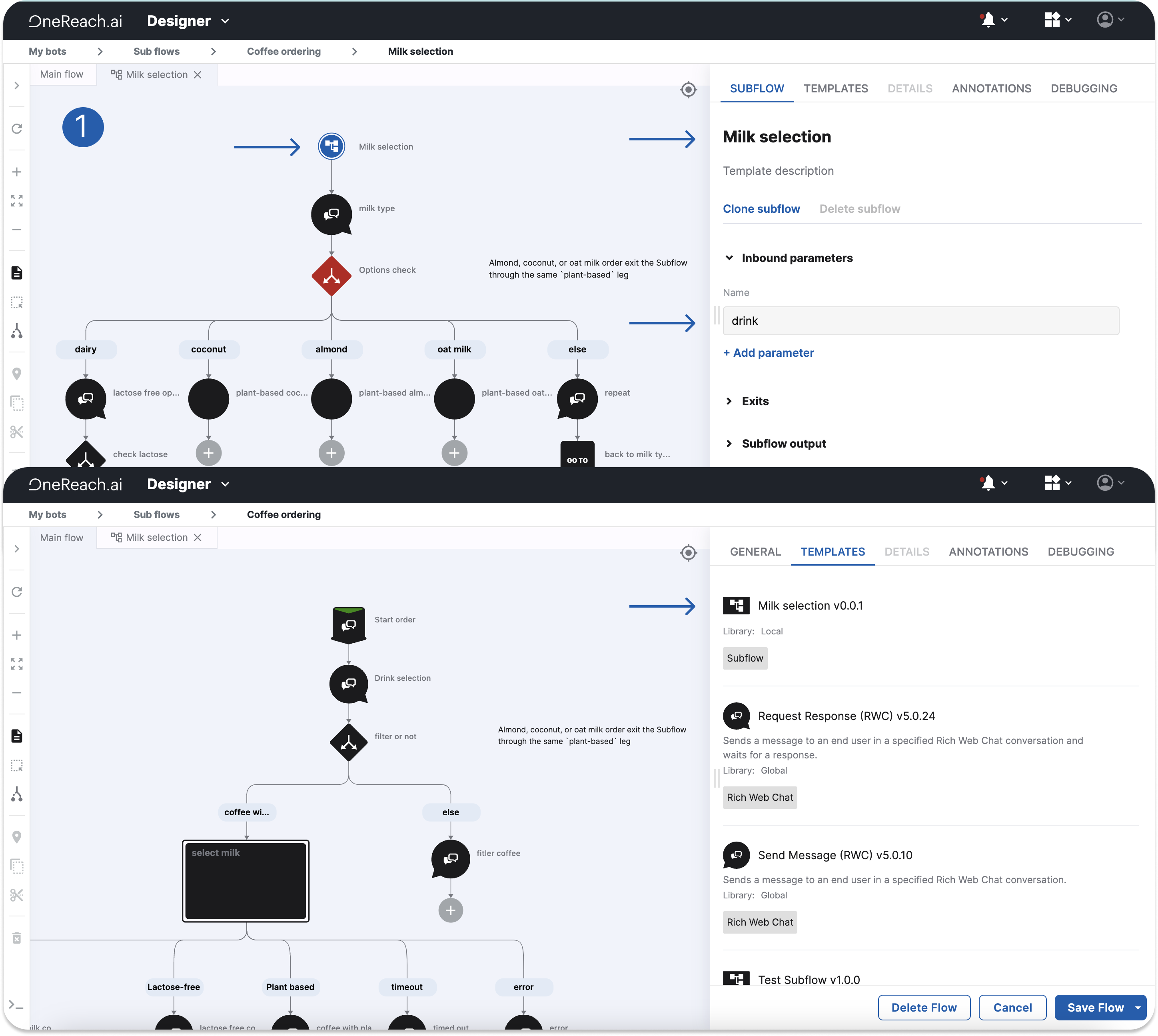 To reuse the Subflow, drag and drop its template onto the Canvas from the Templates tab.